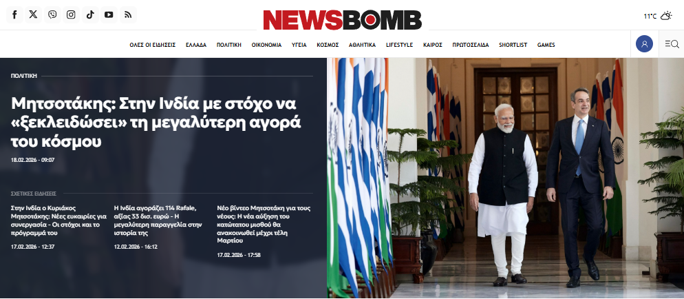 Prime Minister Kyriakos Mitsotakis, speaking Wednesday during an official visit to India, said he aims to give the Greece-India strategic partnership a “significant boost.” In an interview with English-language television channel Times Now, Mitsotakis said bilateral ties are “definitely moving in the right direction,” citing “obvious and significant synergies” that extend beyond strong cultural links.