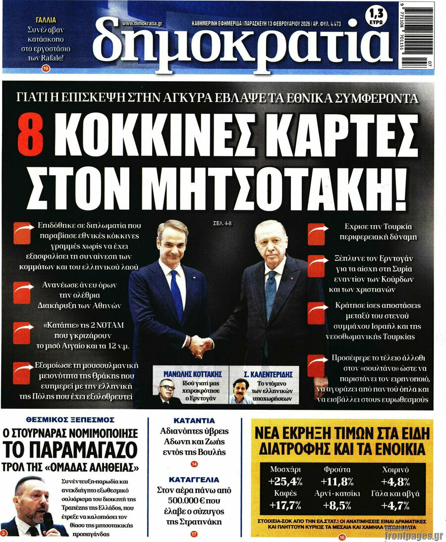 DIMOKRATIA: 8 red cards for Mitsotakis!