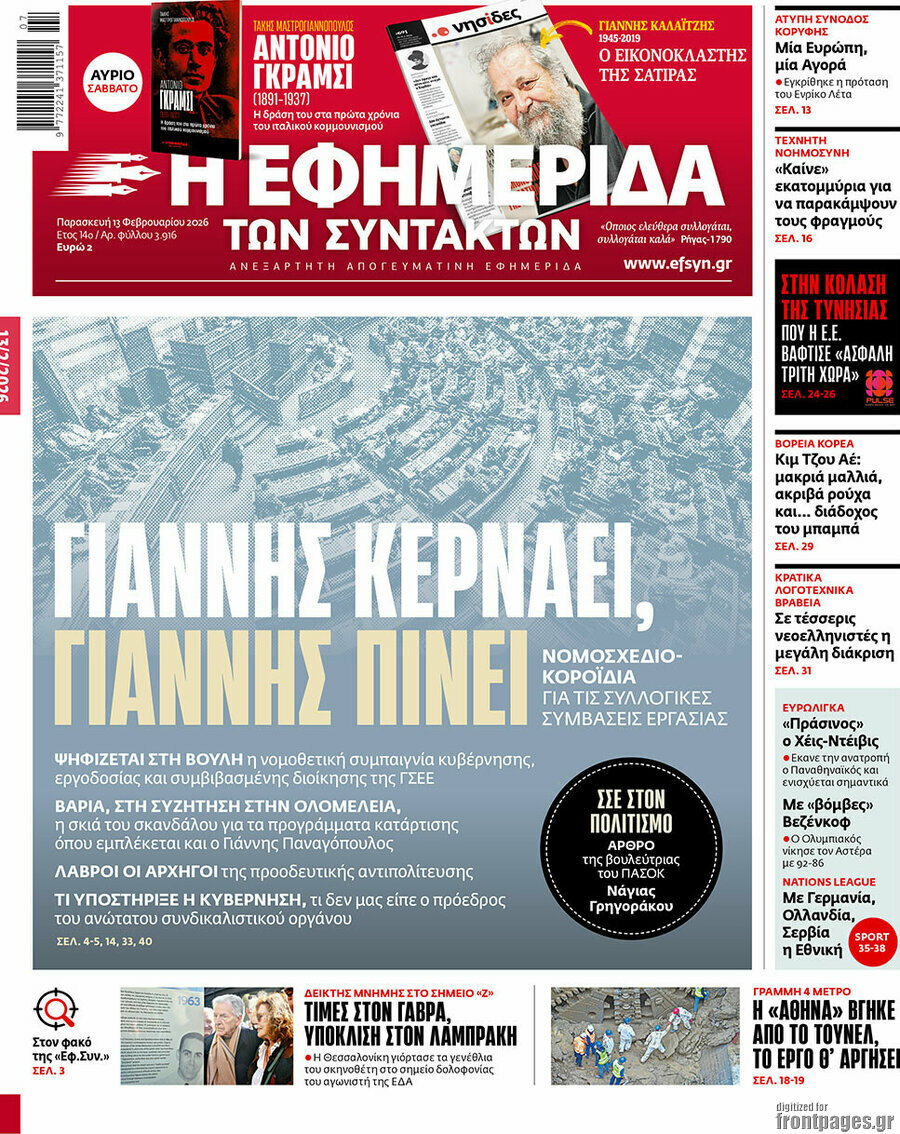 EFIMERIDA TON SYNTAKTON: Bill on collective labor agreements is a mere mockery of workers