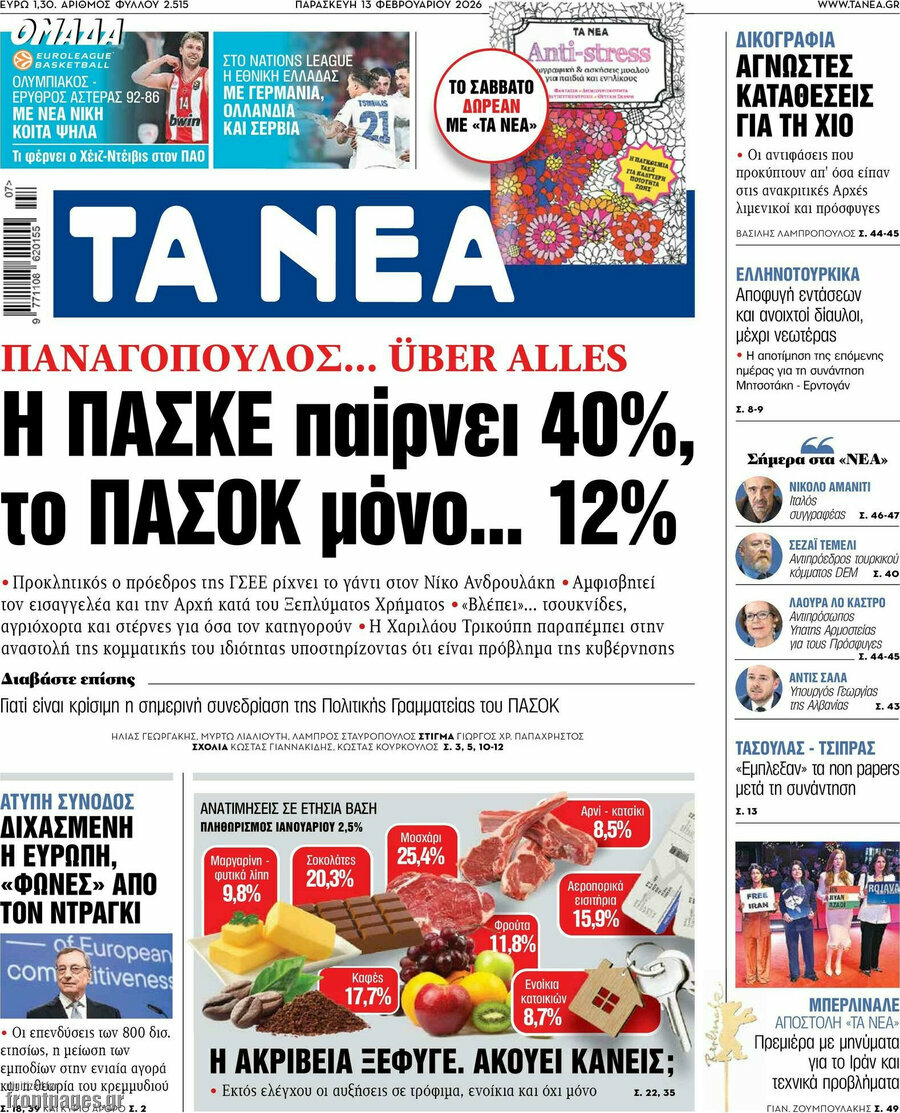 TA NEA: Panagopoulos uber alles: PASKE union faction at 40% while PASOK party at only…12%