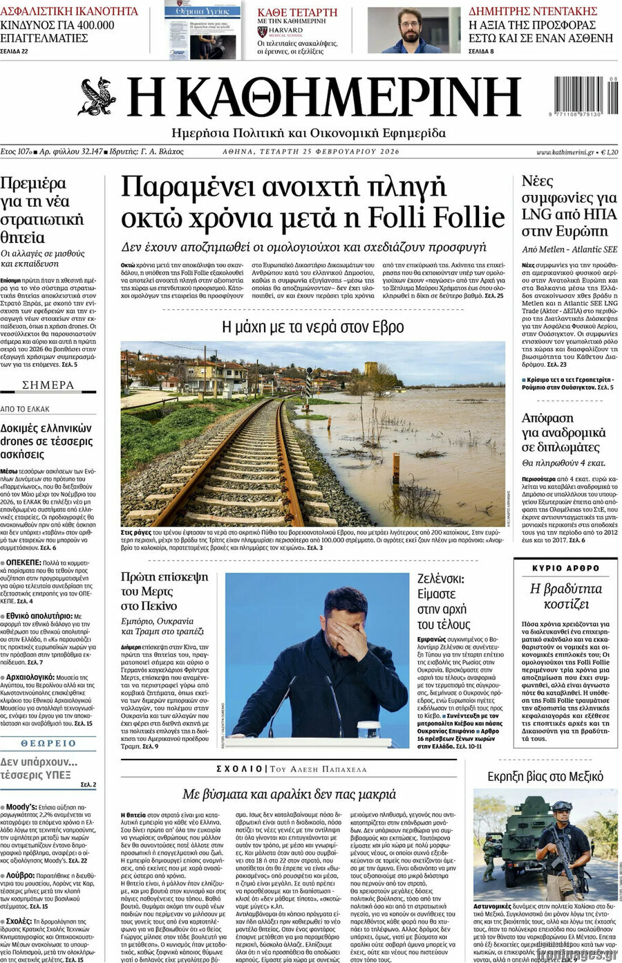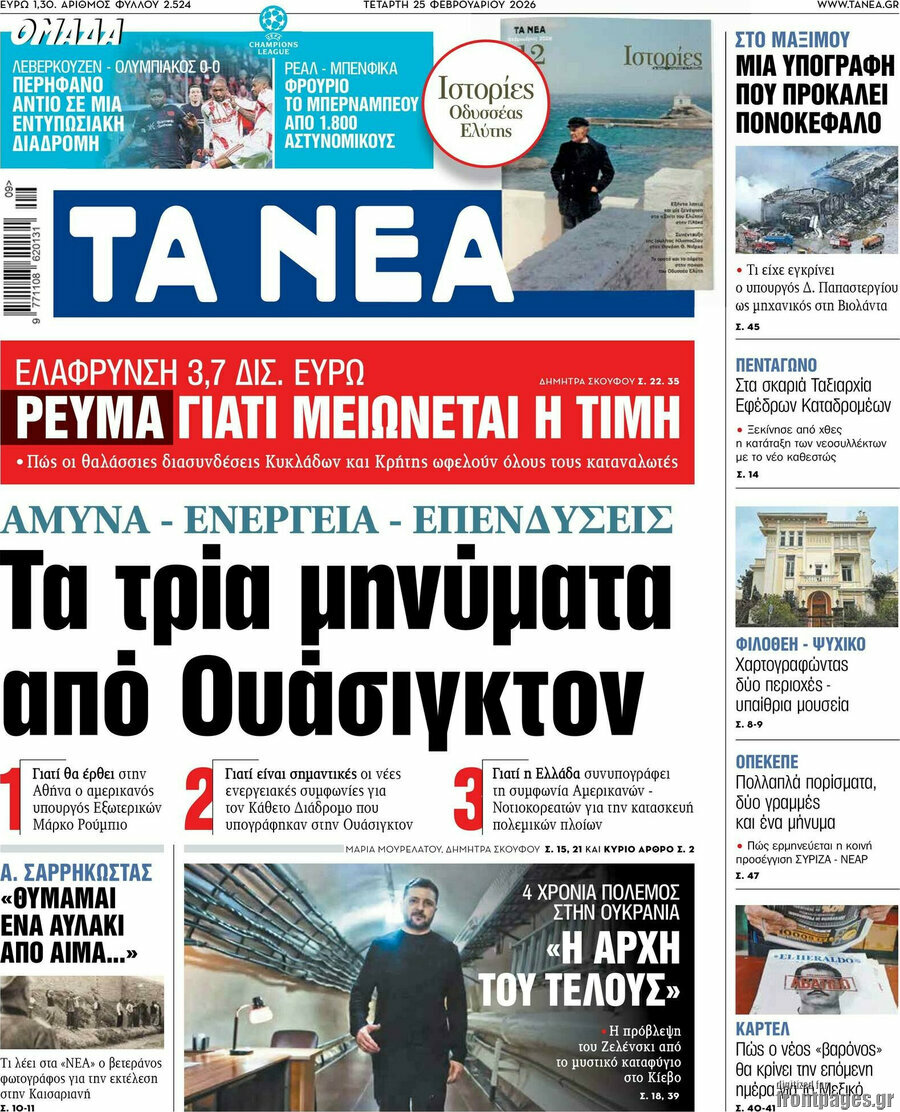 The companies involved in the major LNG deals signed in the US on Tuesday, as well as the bank stocks, enjoyed a rebound at the Greek bourse on Wednesday, albeit on a somewhat reduced turnover. The rest of the week will likely focus on the release of the 2025 financial results of major groups, such as OTE, Piraeus Bank, Eurobank and Helleniq Energy on Thursday, and then National Bank and Alpha Bank on Friday, among others.