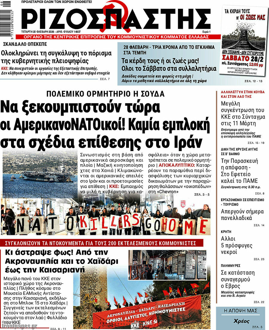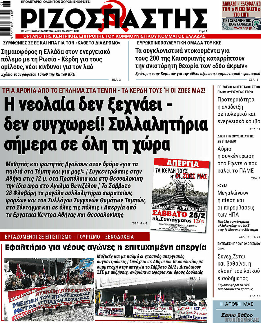 RIZOSPASTIS: Young people do not forget or forgive! Rallies throughout the country in light of the Tempi rail-crash anniversary