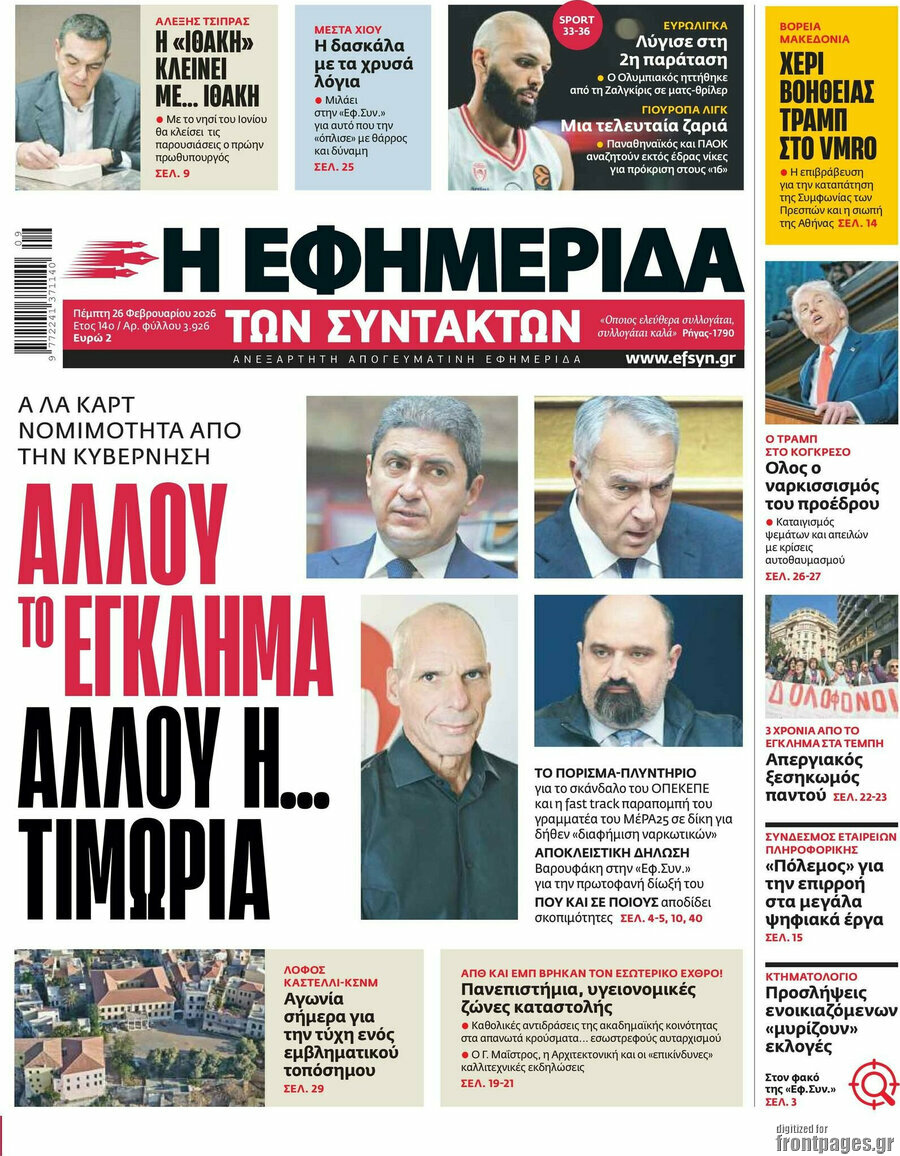EFIMERIDA TON SYNTAKTON: A la carte legality by the government: The crime is elsewhere compared to the punishment