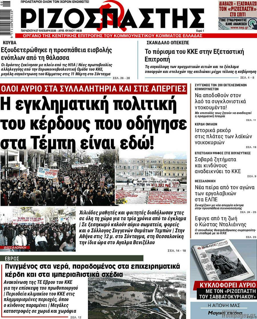 RIZOSPASTIS: The criminal profit policy, which led to the fatal Tempi rail-crash, is still here!