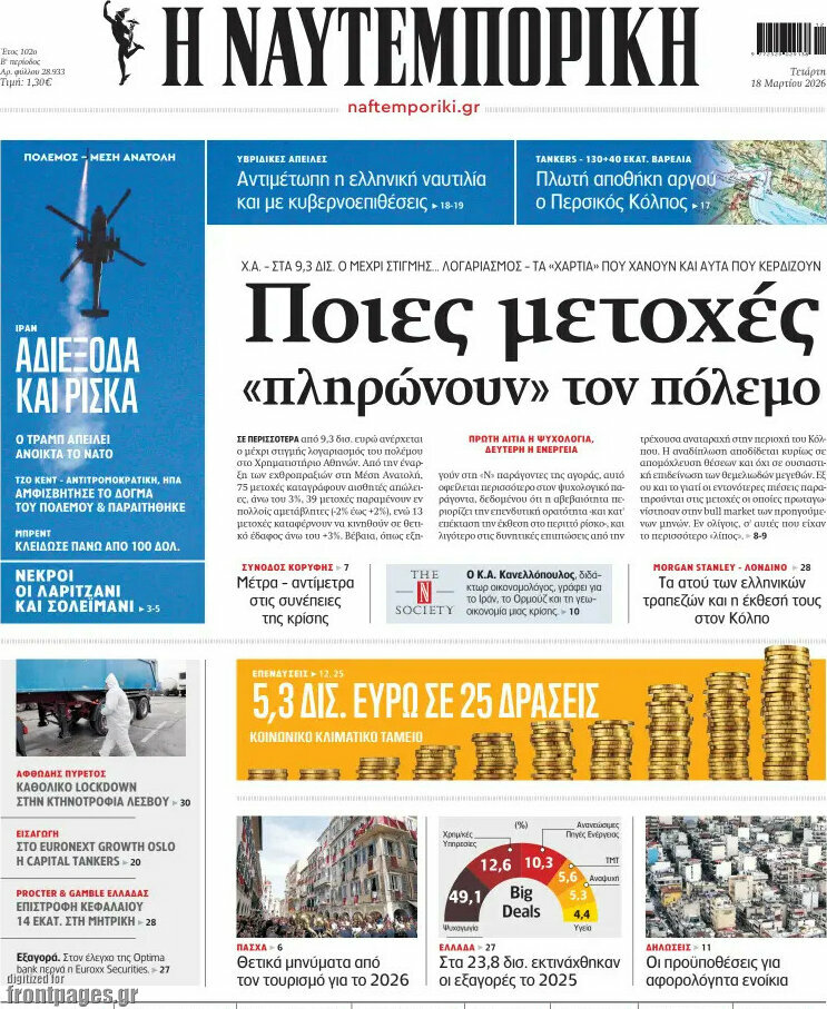 NAFTEMPORIKI: Which stocks are “paying” for the war