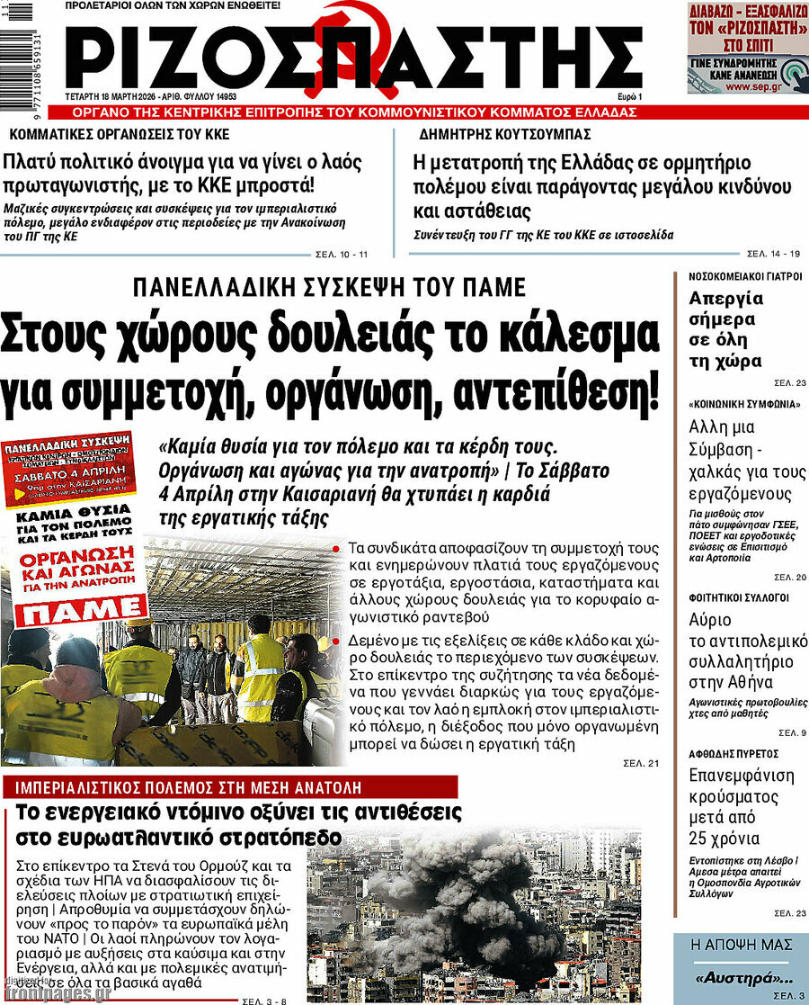 RIZOSPASTIS: Communist Party Union “Pame” calls for participation, organization and counter-attack