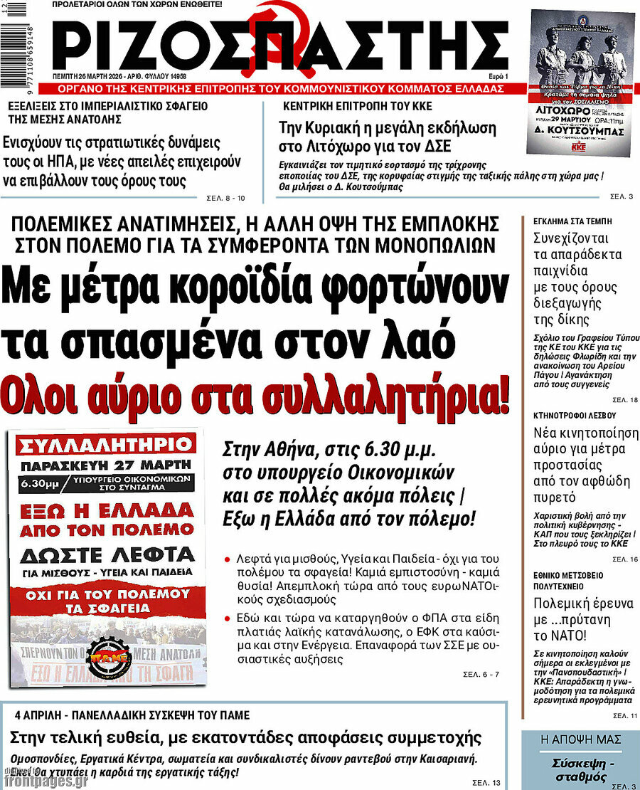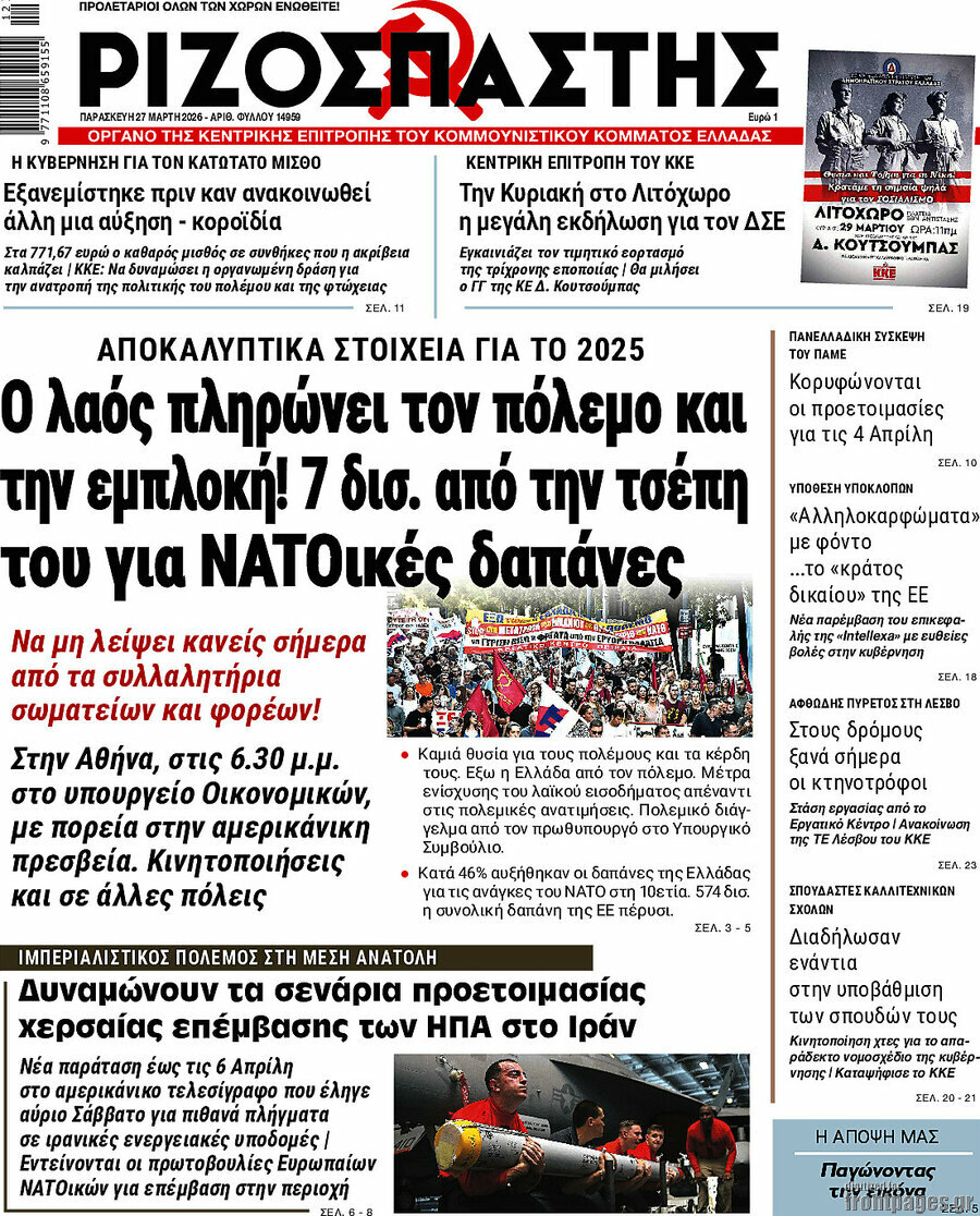 RIZOSPASTIS: Simple folks are paying for the war and the country’s involvement