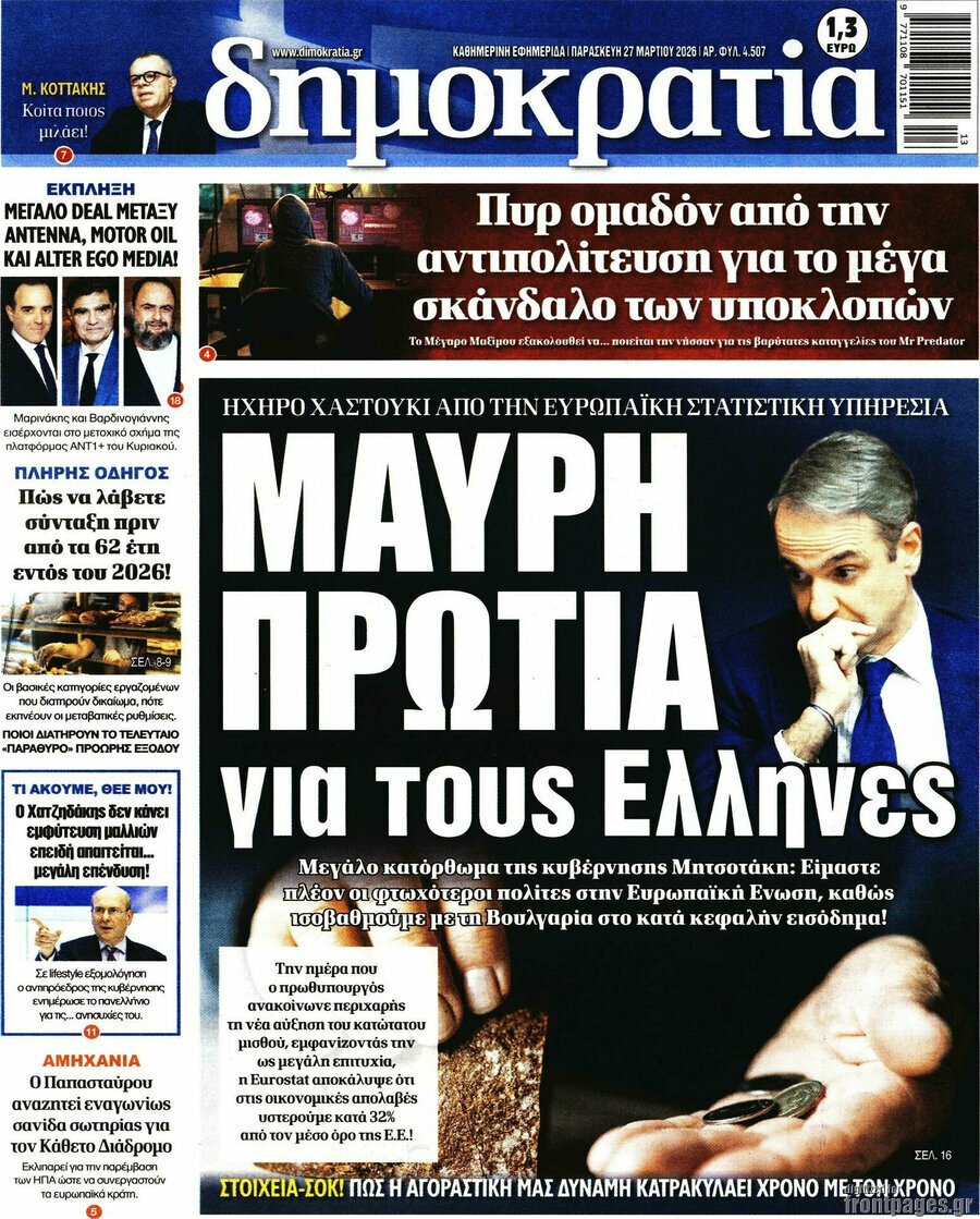 DIMOKRATIA: Black lead for Greeks: The poorest in the EU