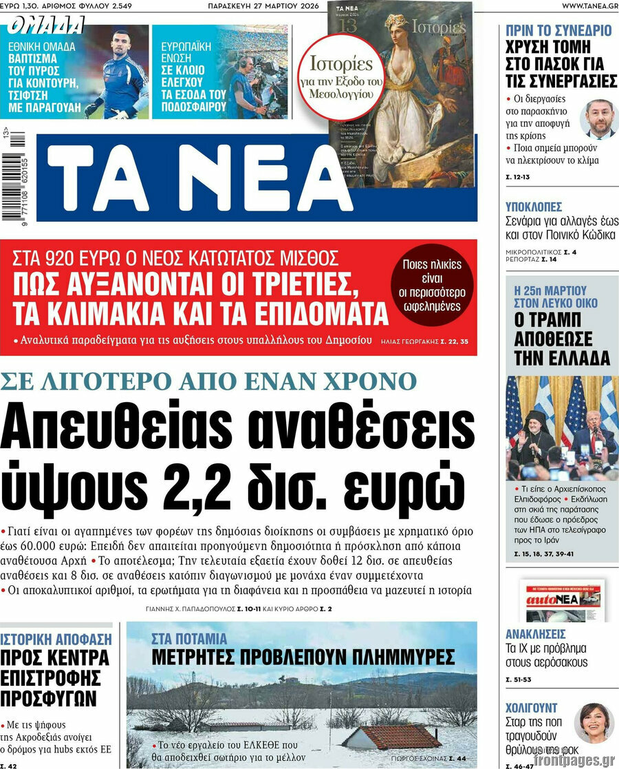 TA NEA: Direct award of state contracts worth 2,2 bln in less than a year