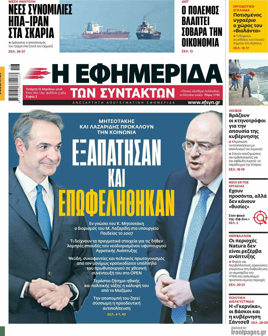 EFIMERIDA TON SYNTAKTON: Mitsotakis and his deputy minister Lazaridis both deceived the people and benefitted from the latter’s illegal state appointment
