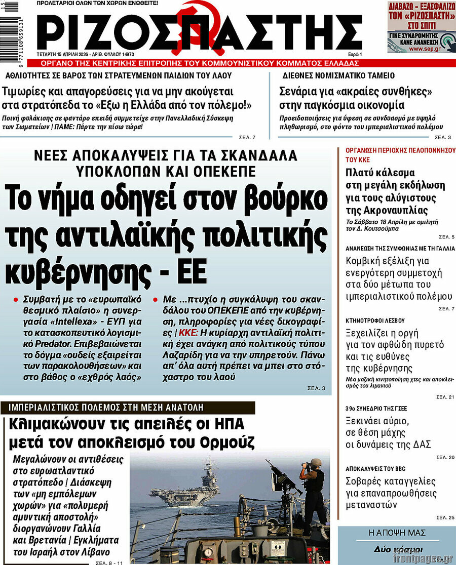 RIZOSPASTIS: New revelations regarding the wiretappings and OPEKEPE scandals link them to the policies of the Greek government and the EU