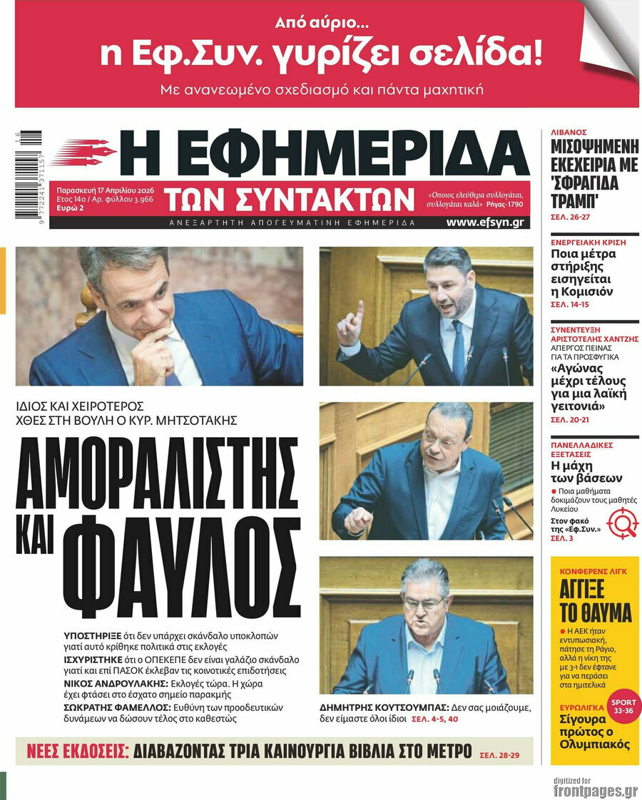 EFIMERIDA TON SYNTAKTON: Mitsotakis: amoral and corrupt