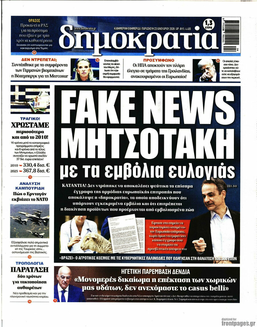 DIMOKRATIA: Fake News by Mitsotakis regarding sheep-pox vaccines