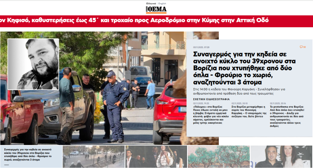 Authorities have arrested one person and detained another as part of a large-scale police operation following a deadly attack in the village of Vorizia, near Iraklio on the southern island of Crete, which left two people dead and four injured on Saturday. The violence reportedly stemmed from a long-standing dispute between the Kargakis and Frangiadakis families over grazing lands, and officials fear the feud could continue.