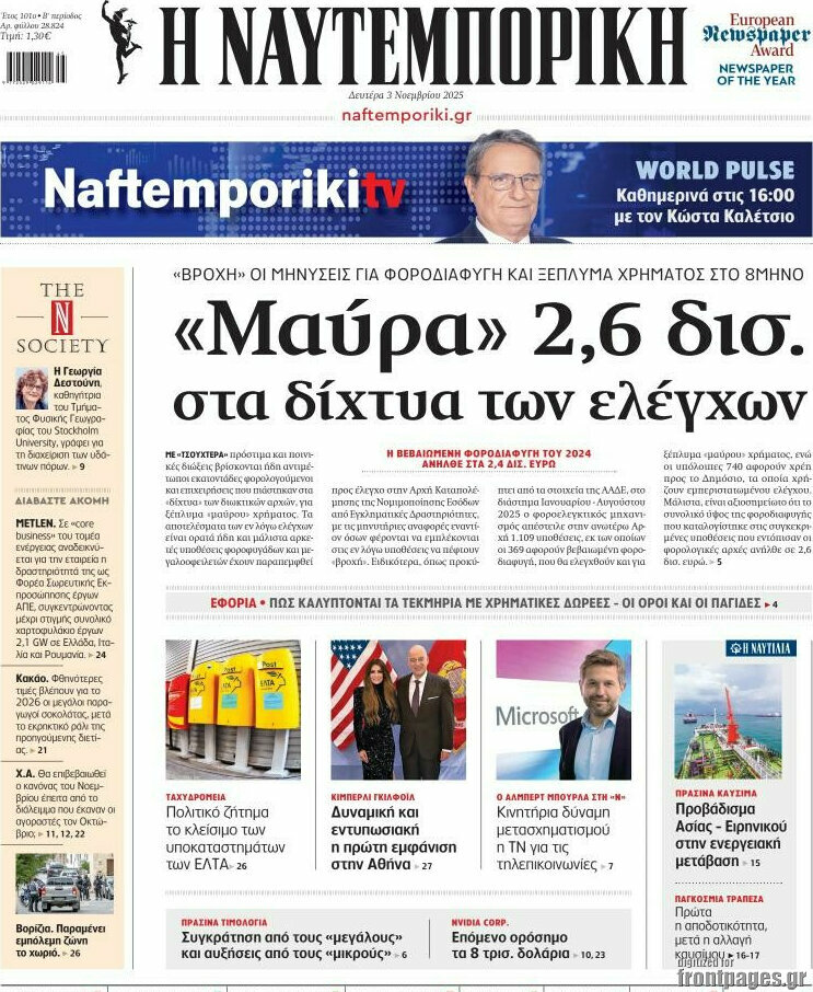 NAFTEMPORIKI: Black money worth 2,6 bln “caught” by state auditors