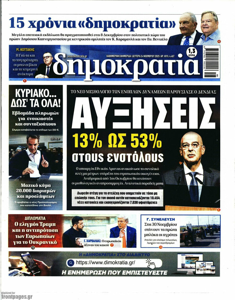DIMOKRATIA: Wage increases of 13% to 53% for servicemen