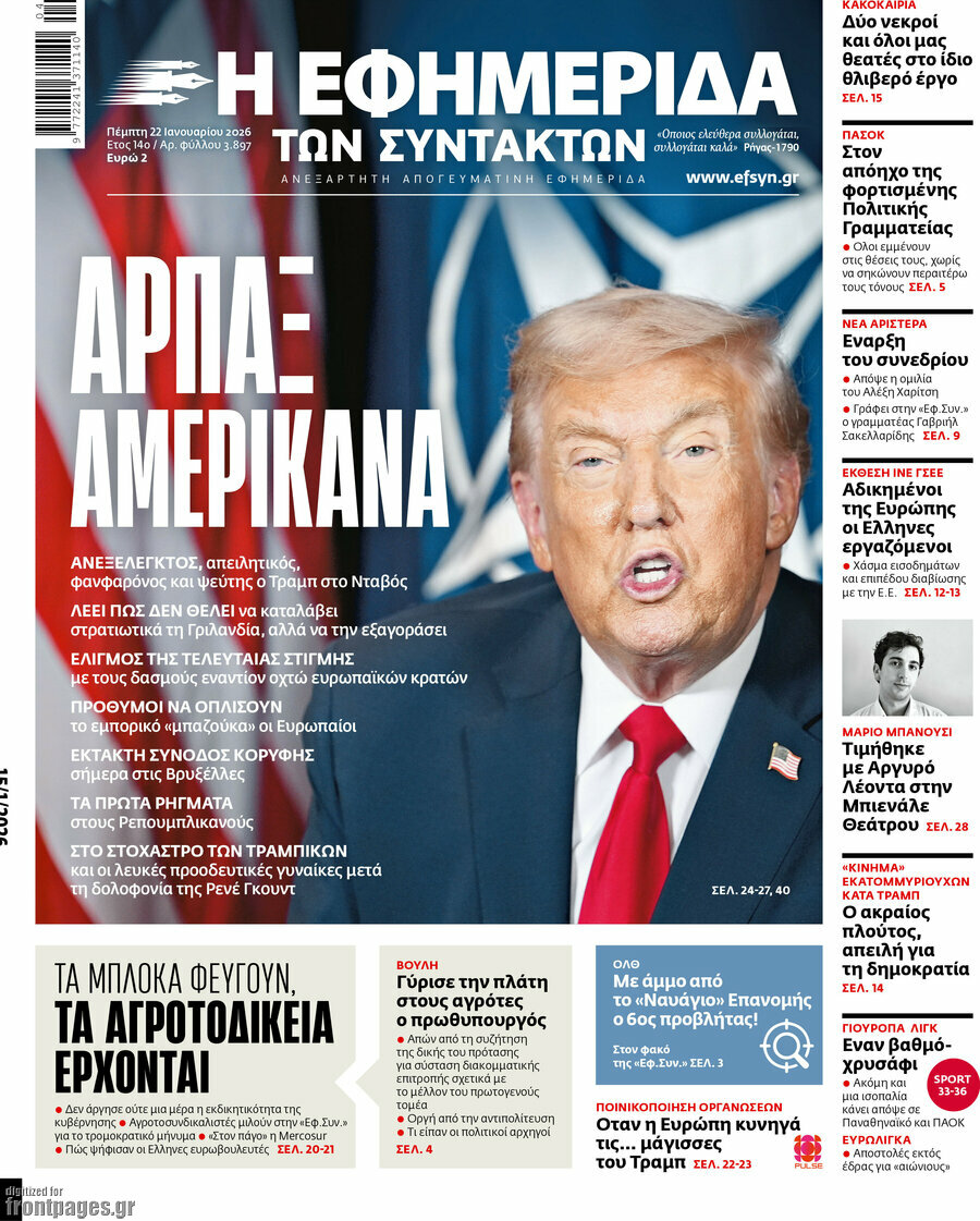 Traders were appeased by the speech of US President Donald Trump in Davos on Wednesday afternoon, and stock prices at the Greek bourse swung from decline to growth by closing. That served to cover not only the morning’s losses but also some of those recorded on Tuesday. Geopolitical uncertainty persists, though, even if Trump ruled out the use of violence regarding Greenland, and stock volatility is expected to continue in the short term.