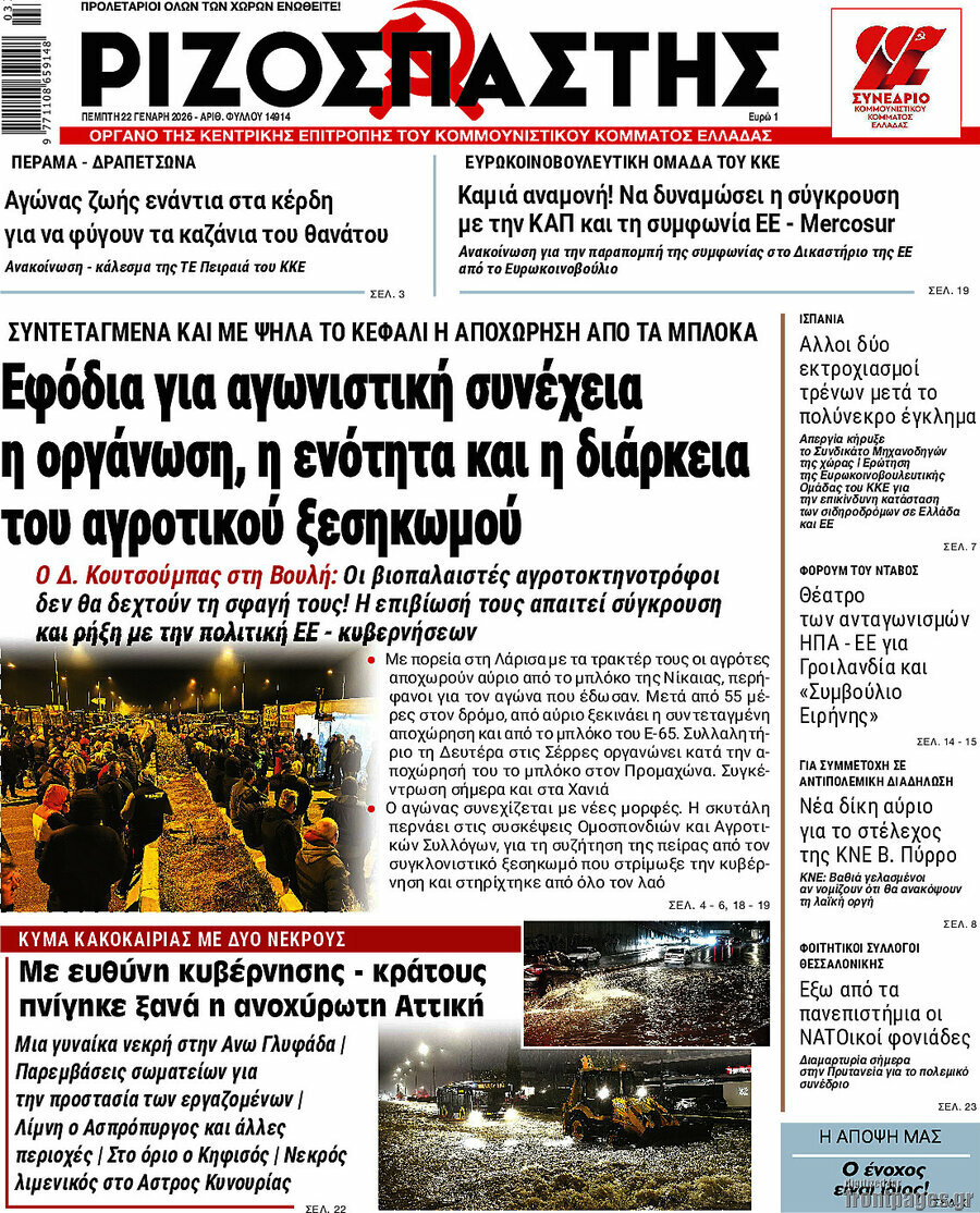 RIZOSPASTIS: The organization, unity and duration of farmers’ uprising is the basis for future battles