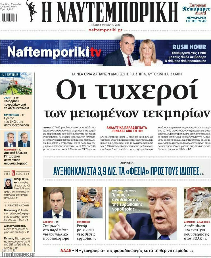 NAFTEMPORIKI: The lucky ones regarding the newly reduced tax-criteria