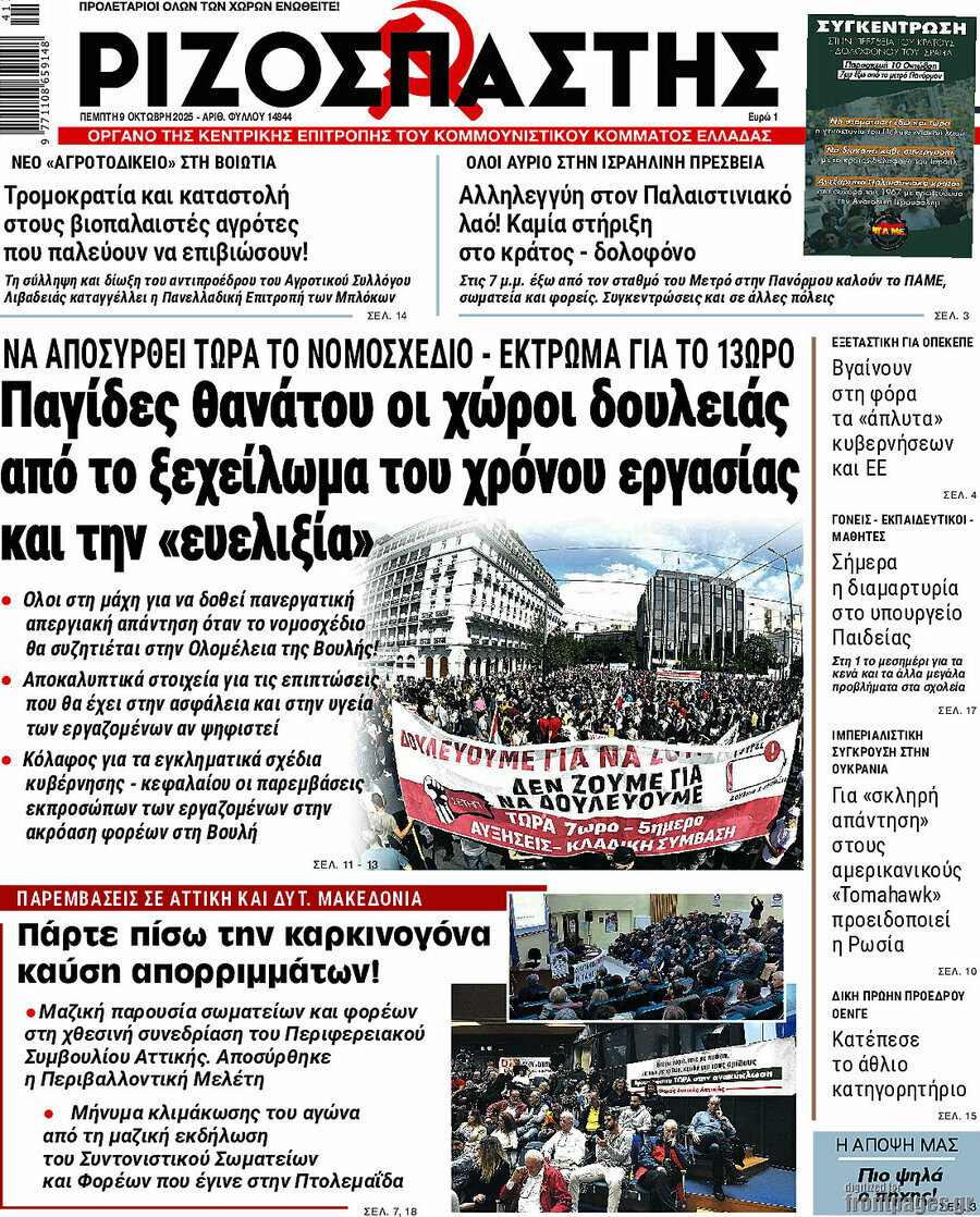 RIZOSPASTIS: Traps of death in working spaces due to “flexibility” and the extreme extension of working hours