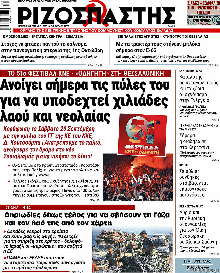 RIZOSPASTIS: 51st festival of the Greek Communist Party Youth organization begins today