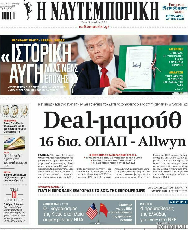 Global business giant Allwyn has chosen Greece for its next major step, local gaming company OPAP announced on Monday. Together, the two businesses will form the second-largest publicly listed gaming company in the world, with a market capitalization of 16 billion euros, listed on the Athens Stock Exchange.
