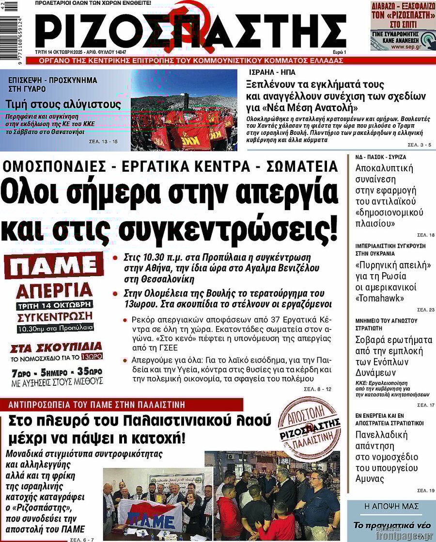 RIZOSPASTIS: Everybody join today’s strike and rallies!