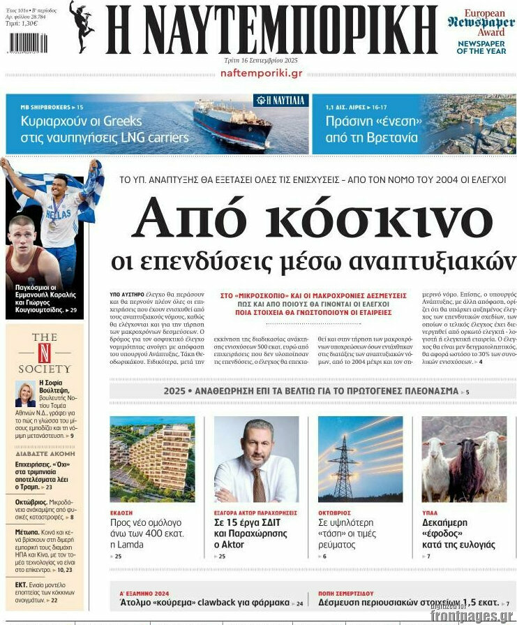 NAFTEMPORIKI: Investments using the development law under scrutiny