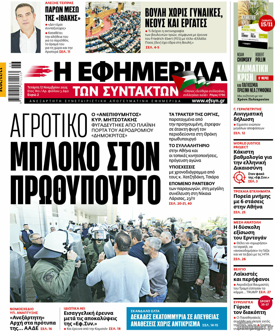 EFIMERIDA TON SYNTAKTON: Farmers’ block against PM Mitsotakis