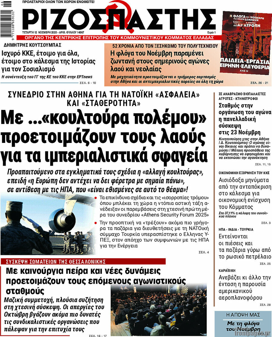 RIZOSPASTIS: NATO Conference in Athens: They are preparing the peoples for imperialistic slaughterhouses through a “war culture”