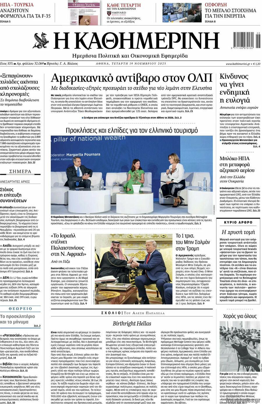 Greece is accelerating plans to develop a new port in Elefsina, a US-backed project described by officials as a strategic counterweight to the Chinese-controlled Piraeus Port Authority. The effort advanced following a meeting Tuesday between Development Minister Takis Theodorikakos and US Ambassador Kimberly Guilfoyle, after which the government announced an initial legislative measure enabling implementation of the plan.
